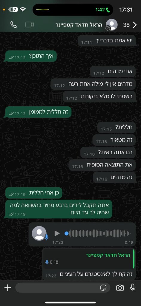 אבל לא ויתרנו. היינו בטוחים שהתוכן הזה יביא לנו קשרים ולקוחות בהמשך, אז המשכנו ללמוד. לקחנו קורסים, סדנאות, ניסינו דרכים שונות – ולמדנו איך לעשות את זה נכון. כל פעם שיפרנו משהו קטן עד שלבסוף מצאנו את הדרך שבאמת עובדת.